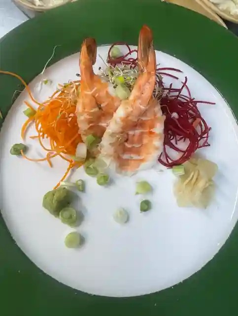 Shrimp, avocado, aspargus, arugula, masago