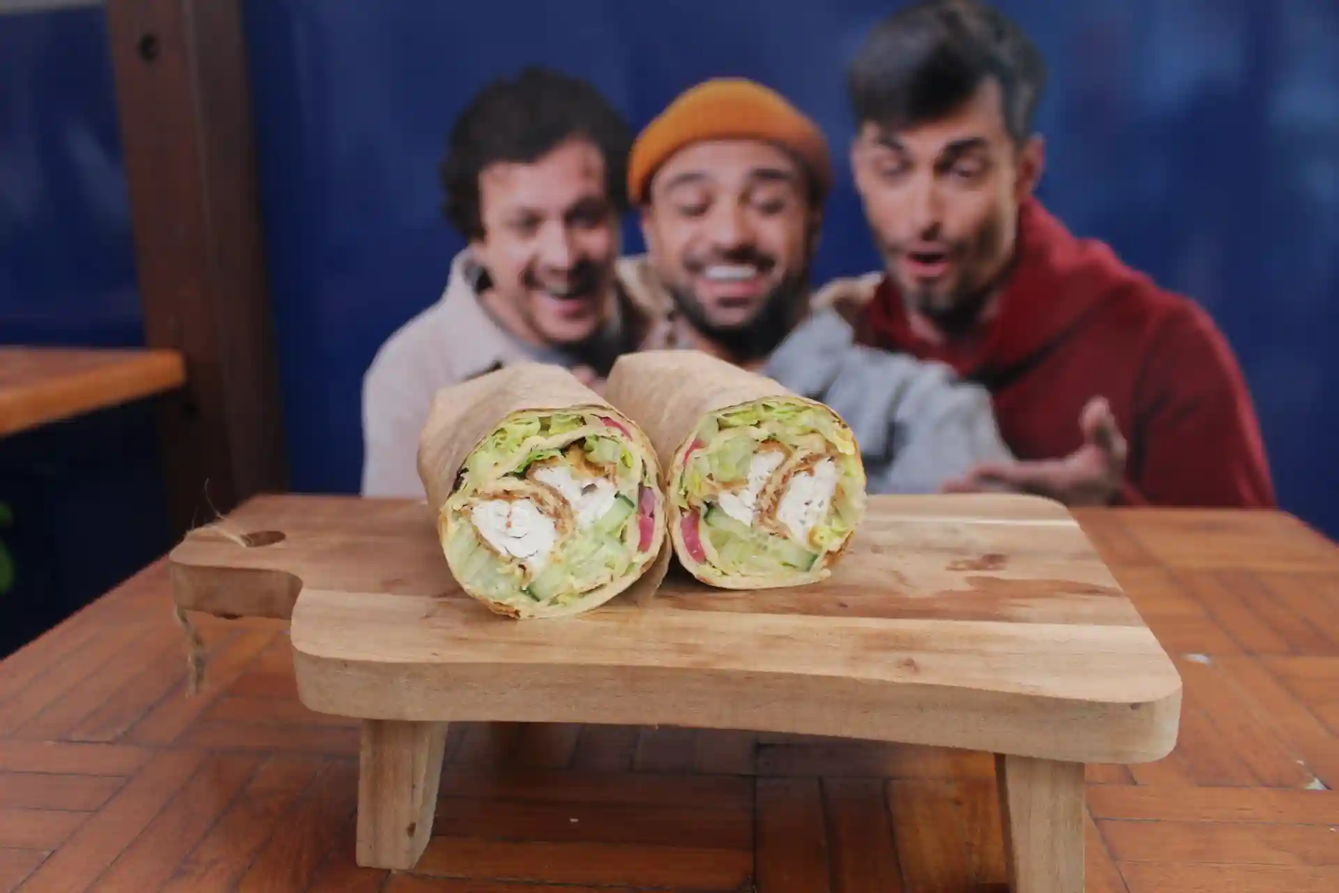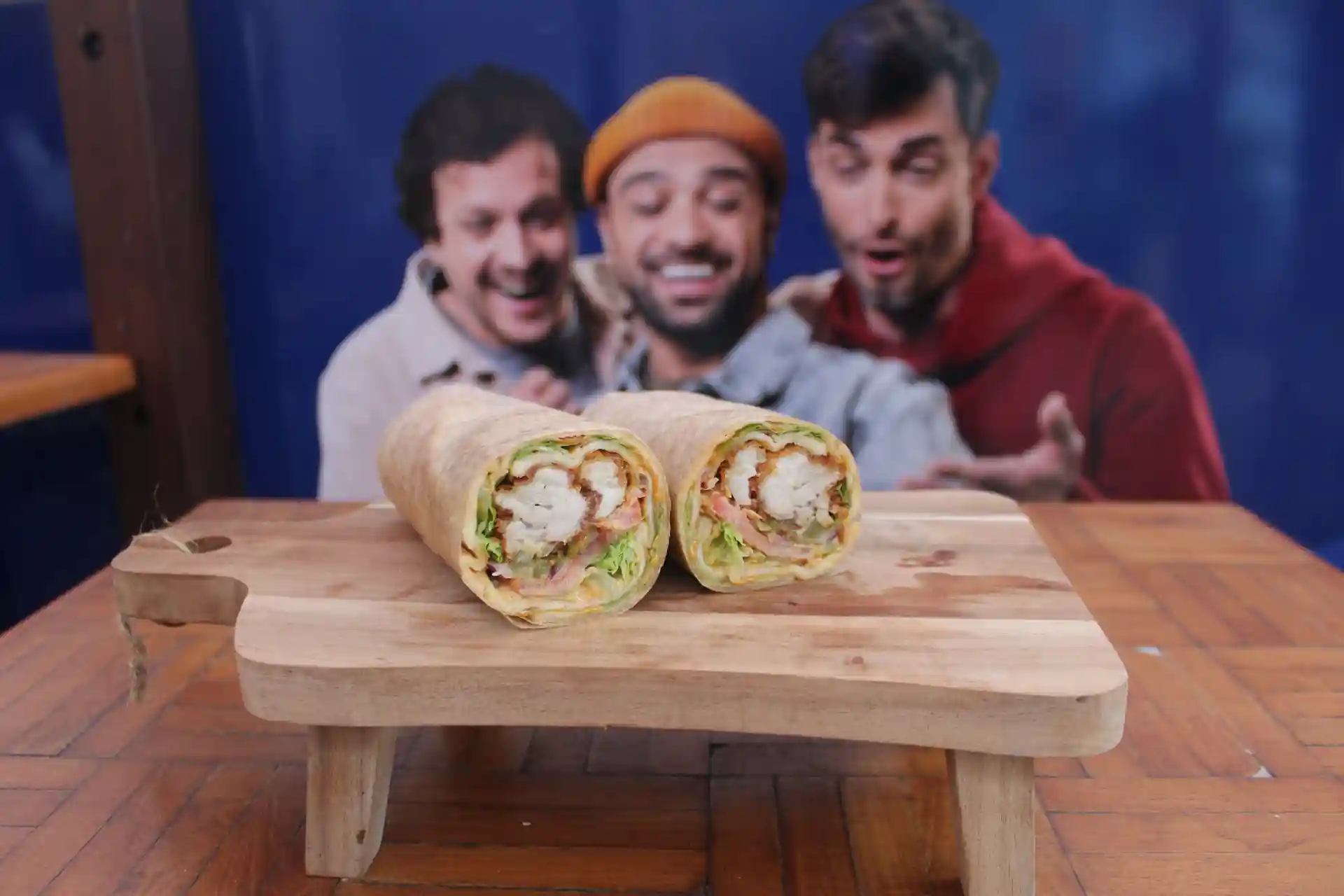 Chicken corn flakes, salad, tomato, onions, candied peppers, tandori mayo