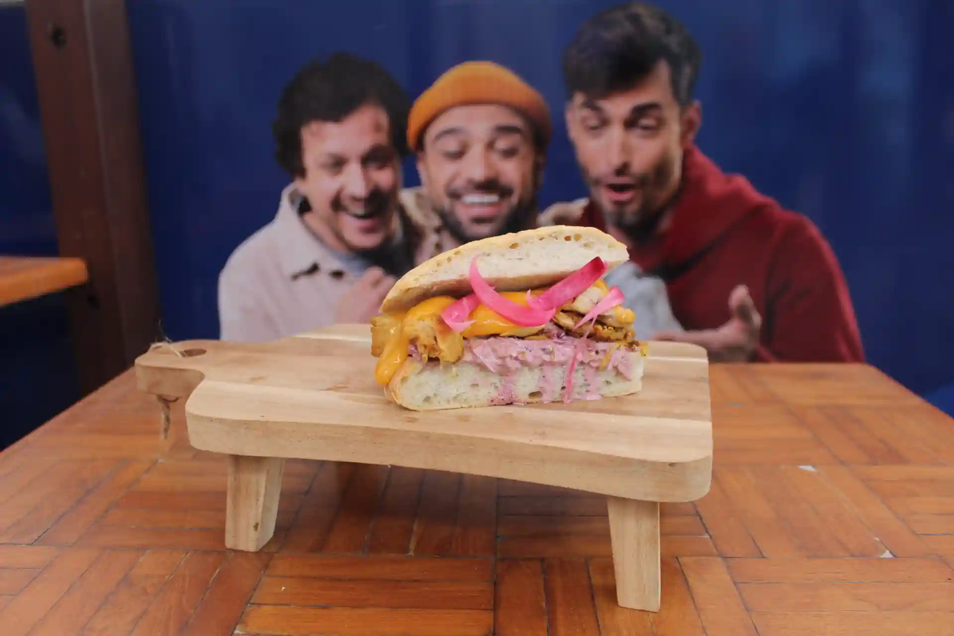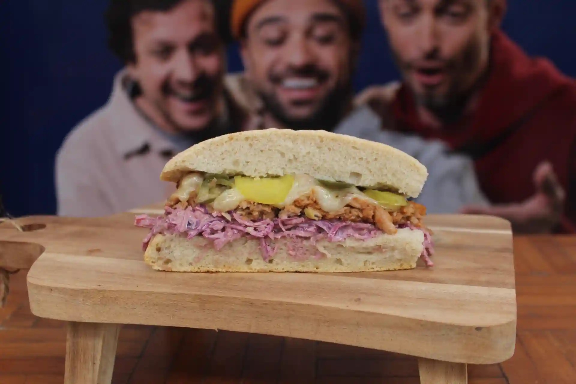 Pulled pork, emmental cheese, coleslaw, pickles, tonkatsu sauce
