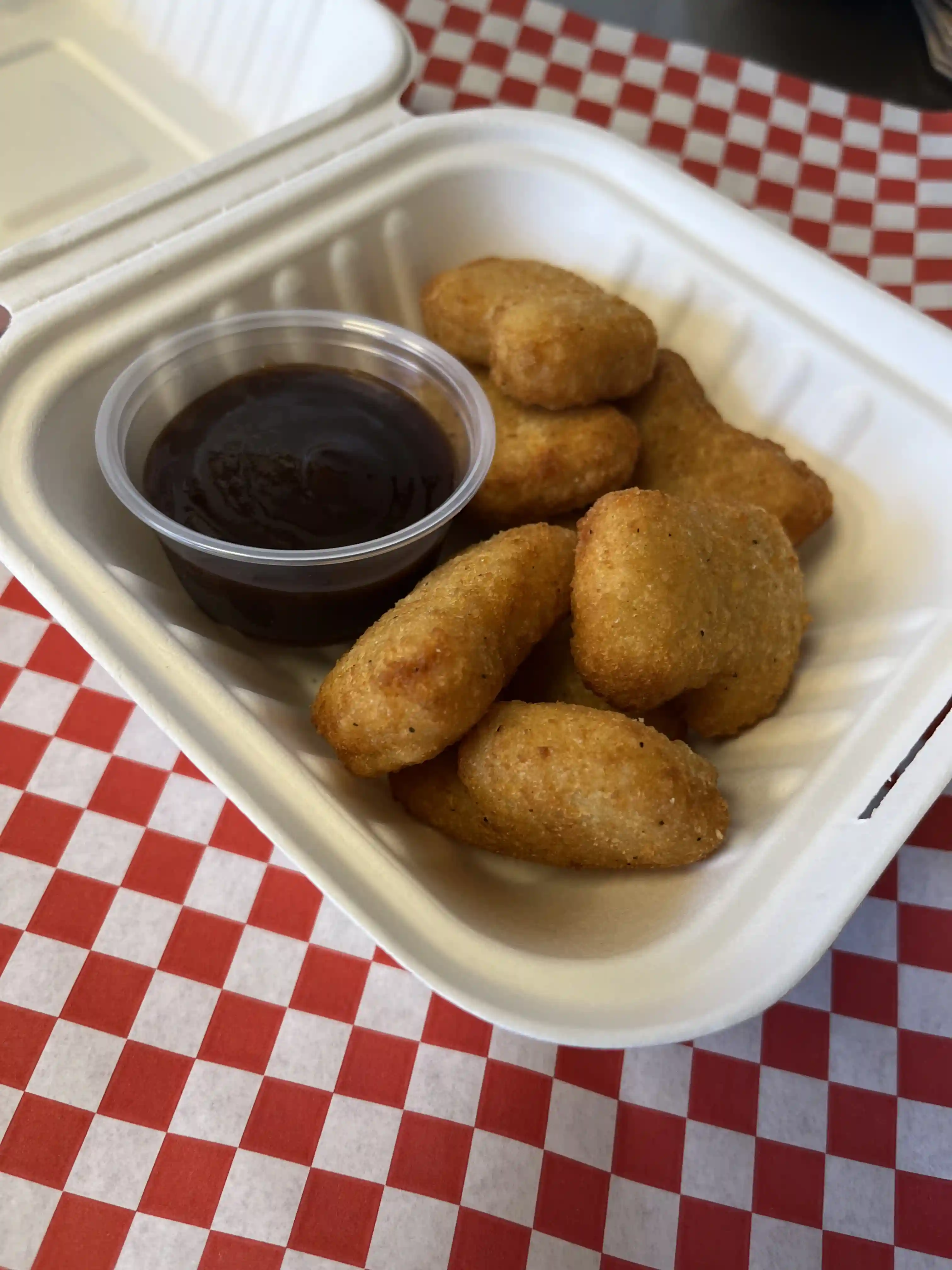 1 Meat of your choice, fried, cheese sauce, 1 sauce of your choice